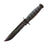 9 1/4" overall. 5 1/4" partially serrated 1095 high carbon steel blade with black epoxy powder coating. Oval Kraton G thermoplastic elastomer handle with black epoxy powder coated carbon steel guard and butt. Black leather belt sheath.