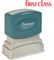 Title Stamp is pre-inked and re-inkable for 100,000 more impressions of "first class" in red ink, again and again. Patented cellular inking process delivers cleaner, more consistent impressions. Retractable frame keeps stamp surface away from desktop until ready to use. Impression size is 1/2" x 1-5/8".