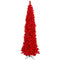 7.5ft tall pencil Christmas tree with LED lights: Tall and slender 7.5ft pencil Christmas tree with 300 red LED lights on red wire for a bold and bright statement.