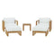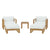 OUTDOOR SET - This outdoor patio set comes crafted with premium solid teak with textured wood grain, durable natural resin, and all-weather stain and fade resistant machine washable cushions