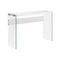 Enhance the look of your home with this exquisite glossy white, hollow-core sofa table with thick and sturdy tempered glass sides. Use this multi-functional table to showcase your treasured decorative items or simply as an accent piece against any wall of your home.