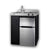 A great-looking and effective kitchen for any space: Kitchenette has a modern design with a jet-black, powder-coated metal cabinet, stainless steel surface, and stainless steel refrigerator doors. Push-to-turn knobs, indicator lights on the cooktop, and a 4" high backguard help add protection.