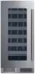 Size: 15" Wide Wine Cellar: The 15" wide wine cellar is built for efficiency and style. It can store up to 18 bottles with five gliding shelves and a floor shelf. The unit's frost-free operation, dimmable LED lighting, and reversible door add to its convenience and user-friendly design.