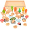 37 NATURAL WOODEN FIGURINES -- This set features an assortment of 37 woodland shapes. Create elaborate small worlds with little critters, mushrooms, stones, trees, water pieces and more.