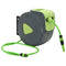 This retractable garden hose reel, comes with a connector and spray nozzle, can be mounted on the wall to water the garden, irrigate, clean a vehicle, etc. This wall mounted hose reel comes pre-loaded with a 30m garden hose, while the connecting hose has a length of 2m
