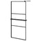 vidaXL Modern Black Walk-In Shower Wall with Shelf, Half-Frosted ESG Glass and Aluminum Structure for Bathroom