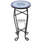 vidaXL Mosaic Side Table/Plant Stand - Weatherproof Ceramic Top with Iron Frame - Versatile Use for Garden, Balcony, Terrace - Easy to Clean - Blue and White Design
