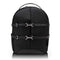 Create the success story of your life with this stylish elegant contrasting leather accents 15” Leather laptop and tablet backpack. Decorative dual front buckles and top handle bring out the forward-thinking and focused personality in you. Store your drinks, beverages, and snacks in the collapsible easy access mesh side pocket. Organize your papers and files inside our fully lined interior with Leather trim and silver hardware kept safe with a dual lockable zipper. 15” padded built in laptop sleeve and padded tablet pocket stores and keeps your important devices safe. Keep your business accessories Easily accessible with an interior organizer. Rear exterior Features ultra-padded Air mesh with air flow system (AFS) and padded backpack straps or attach it to your luggage with the piggyback strap.