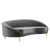 CHANNEL TUFTED SOFA - Reinventing mid-century design with glam deco style, this curved back sofa charms with vertical channel tufting, gold accents, and asymmetrical shape