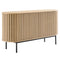 MODERN SIDEBOARD - With its sleek oval silhouette and timber style strip design, the Fortitude sideboard infuses modern sophistication into any dining room, living room or lounge space