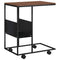 vidaXL Black Engineered Wood C-Shaped Side Table with Wheels and Additional Shelf, Blends with Industrial and Modern Decor